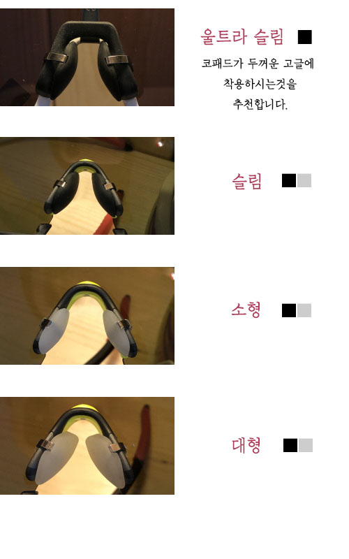 고글에 맞게 크기와 색상별로 기존 코패드에 덧붙혀 사용할 수 있습니다.
